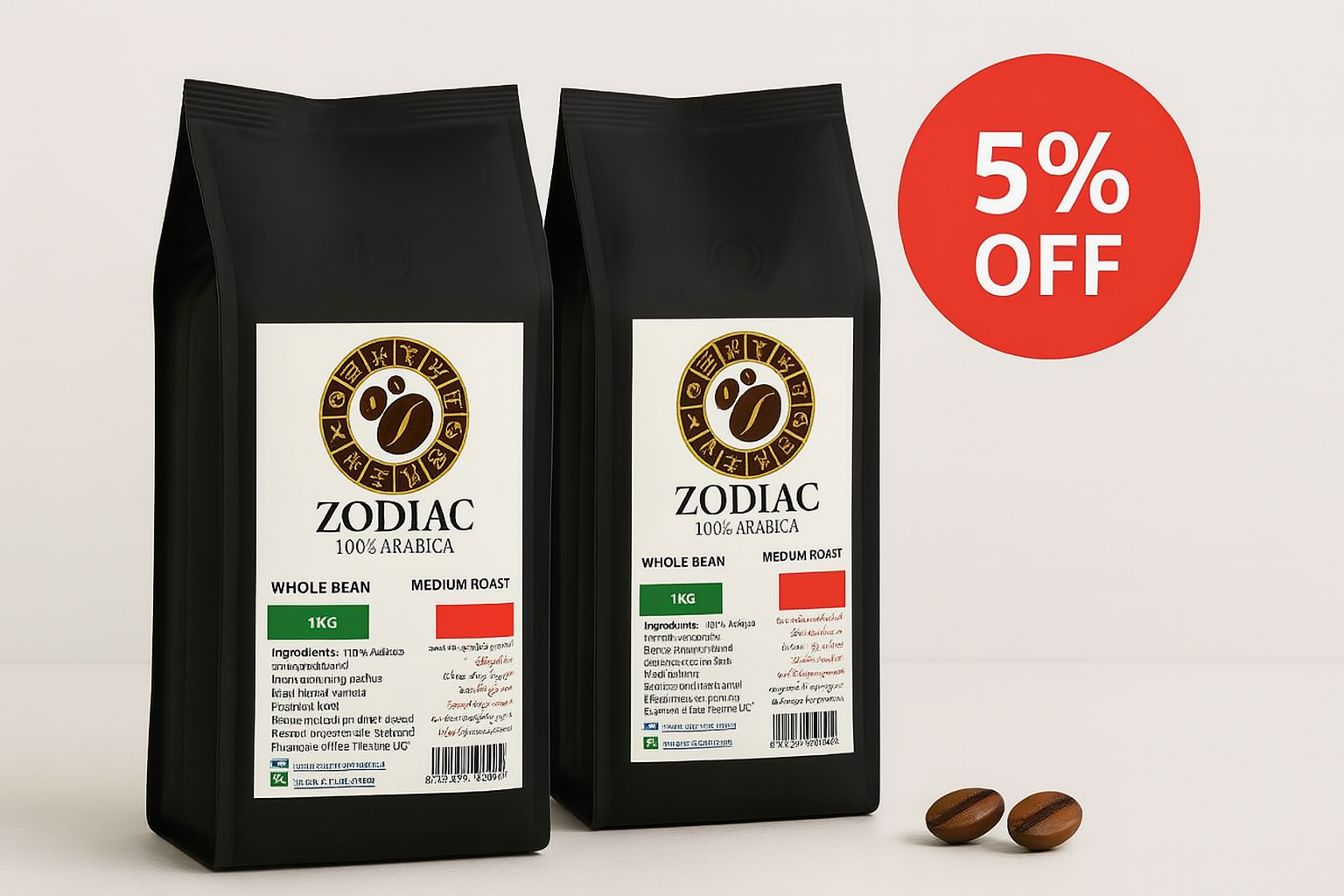 Crafted in Italy with premium Arabica beans sourced from South America, Zodiac Espresso delivers a smooth, aromatic cup with rich notes of dark chocolate, toasted nuts, and a clean, balanced finish. Expertly roasted in a traditional Italian roastery, each bean embodies the perfect harmony of origin and craftsmanship.